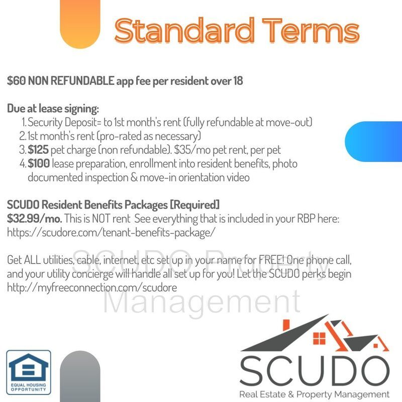 Professionally managed by top rated management company, SCUDO Realty + Property Management! Selling a home, or thinking about purchasing instead? We'd love to help: https://scudore.com/rentingbeforebuying/