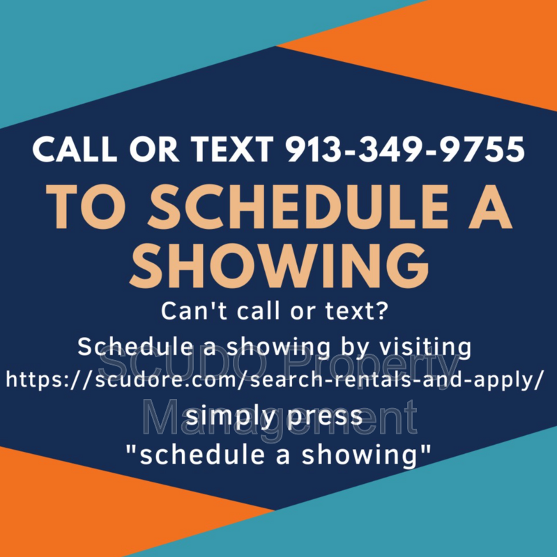 Call or text 913-349-9755 to schedule a showing. Watch this short video to schedule online: https://scudore.com/how-to-schedule-a-showing