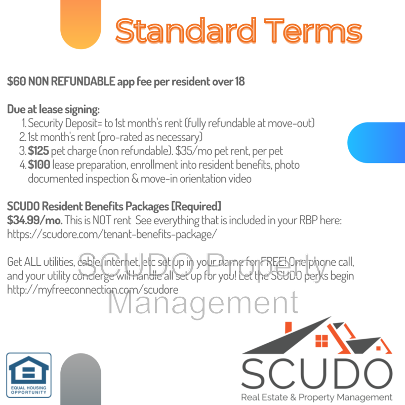 Professionally managed by top rated management company, SCUDO Realty & Property Management! Selling a home, or thinking about purchasing instead? We'd love to help: https://scudore.com/rentingbeforebuying/