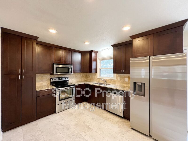 Large kitchen with sleek stainless steel appliances for all your culinary creations